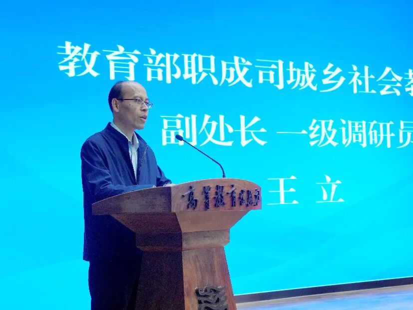(教育部职业教育与成人教育司城乡社会教育处副处长王立讲话)