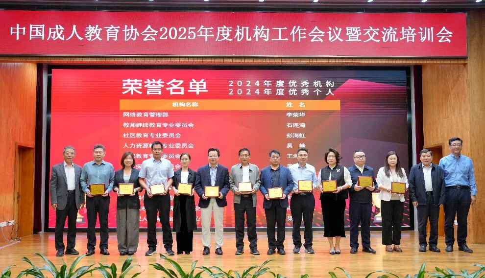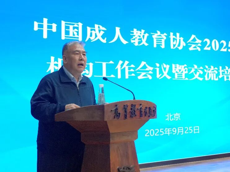 中国成人教育协会2025年度机构工作会议于9月25日在京召开。中国成人教育协会会长高文兵,教育部职业教育与成人教育司城乡社会教育处副处长、一级调研员王立,中国教育科学研究院党委委员、副院长于发友,副会长付天华、刘臣、谭向东、李振其,副秘书长周延军、石连海出席会议,中国成协各分支机构、实体机构、学术科研机构、内设机构代表等110余人出席会议。会议由赵跃进副会长兼秘书长主持。