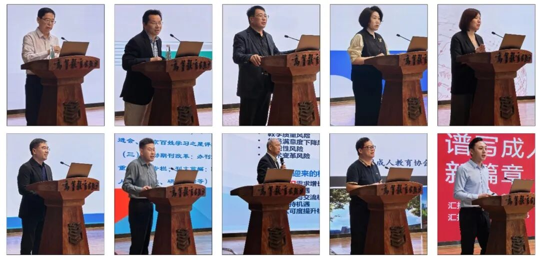 在工作交流阶段,学术委员会周延军、人力资源教育专委会吴峰、教师教育专委会石连海、高校继教专委会陈慕菁、职继数字化建设专委会原泉泉、社会教育与终身学习资源建设工作委员会蒋文博、中国成人教育期刊编辑部王峰、标准化工作委员会李文远、民宿教育专委会朱建国、美育专委会郭凯君先后进行了工作交流分享。